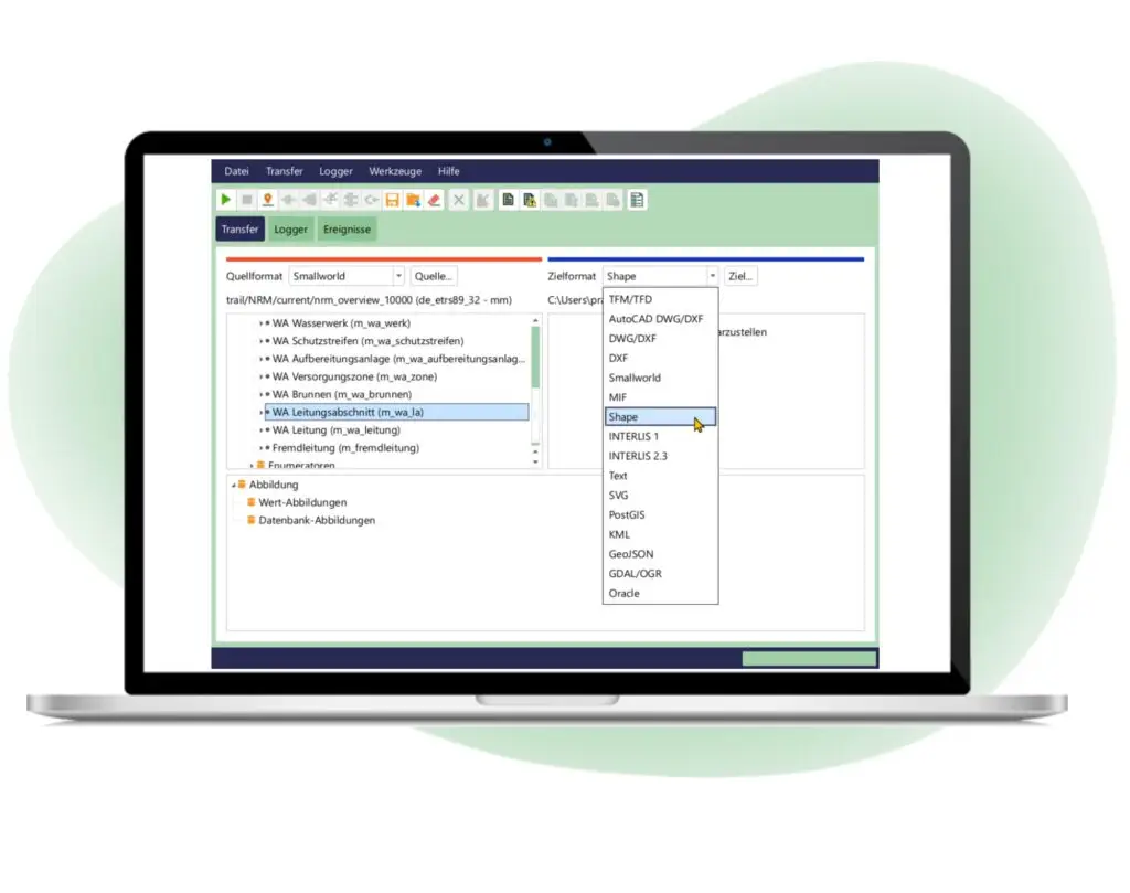 SEPM X-Translator is an interface to import and export vector data to and from Smallworld. During the export, the Smallworld drawing methods are used. This means that all important style-informations are save – data, exported from Smallworld, almost corresponds to the original view.